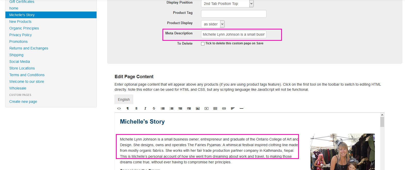 You can also add images or video to the text while also manage the formatting of the content on the custom pages using text editor features or SOURCE MODE via HTML of the page.