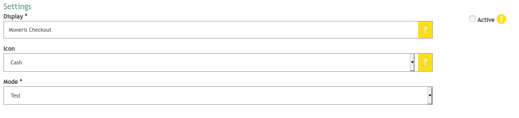 - Active - determines if this Moneris Checkout should show in your checkout as a payment option. Check this box and save changes to show, uncheck box and save changes to hide.