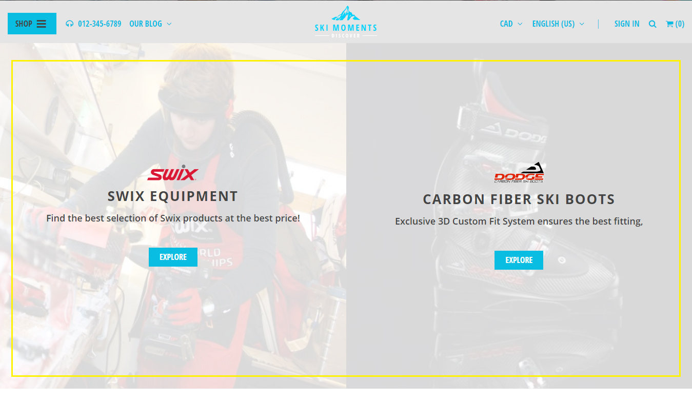 Deze gedeelte is vooral bedoeld om de twee populairste merken van de website onder de aandacht te brengen. Kan echter ook worden gebruikt om de twee populairste categorieën onder het voetlicht te brengen. De website-eigenaar heeft volledige zeggenschap over wat er op de website is te zien.