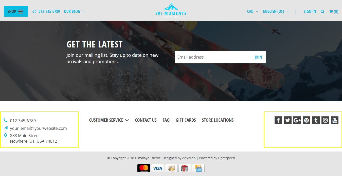 De Himalaya van AdVision is een eigentijds ontwerp en is een van de modernste thema's die beschikbaar zijn voor het Lightpeed eCom platform. Het is een volledig responsieve, voor kleinere mobiele apparaten en breidt uit naar de volledige breedte voor elke desktop monitor.
