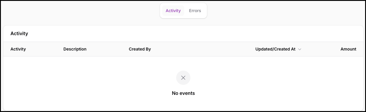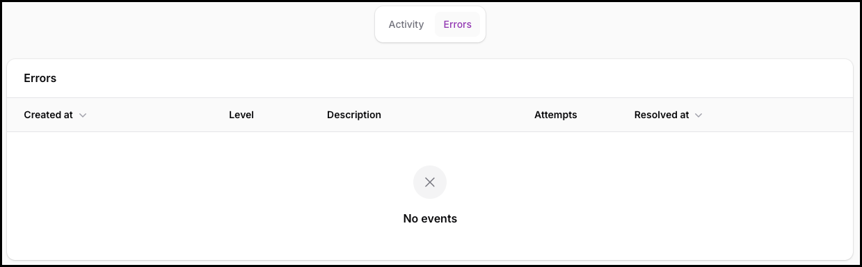 The Errors tab displays any issues encountered during enrichment, delivery, or synchronization.