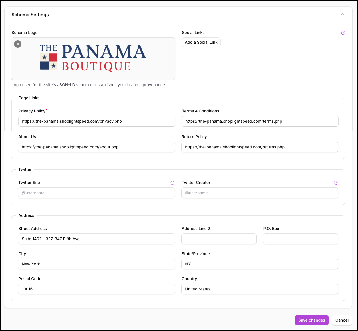 This section controls how your brand, policies, and business identity are represented in structured data (JSON-LD) and social previews across your storefront. These settings do not change how your site looks to customers, but they are critical for trust, compliance, and search engine understanding.