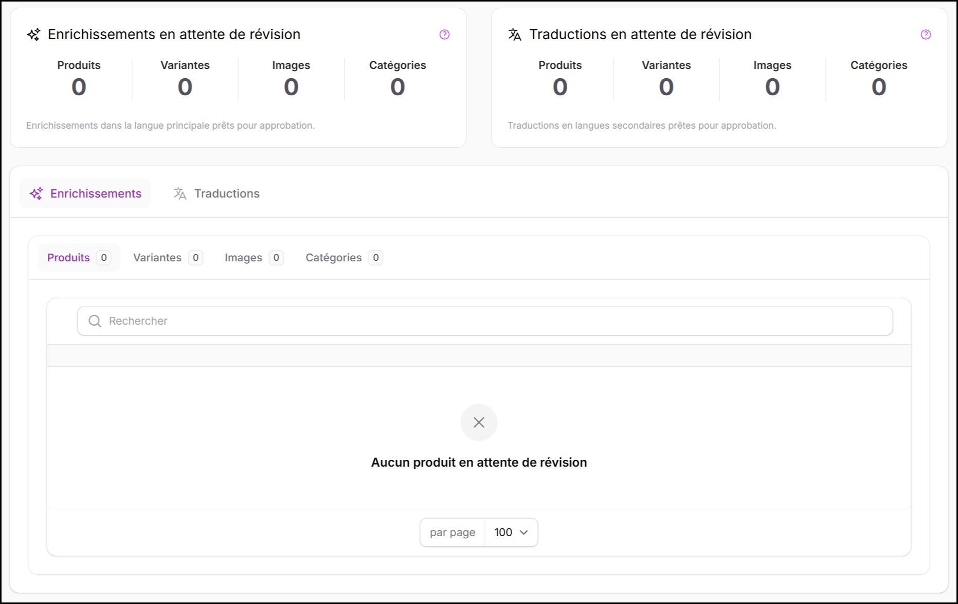Ces compteurs représentent des éléments dont l’enrichissement est terminé et qui sont en attente d’approbation par le marchand.