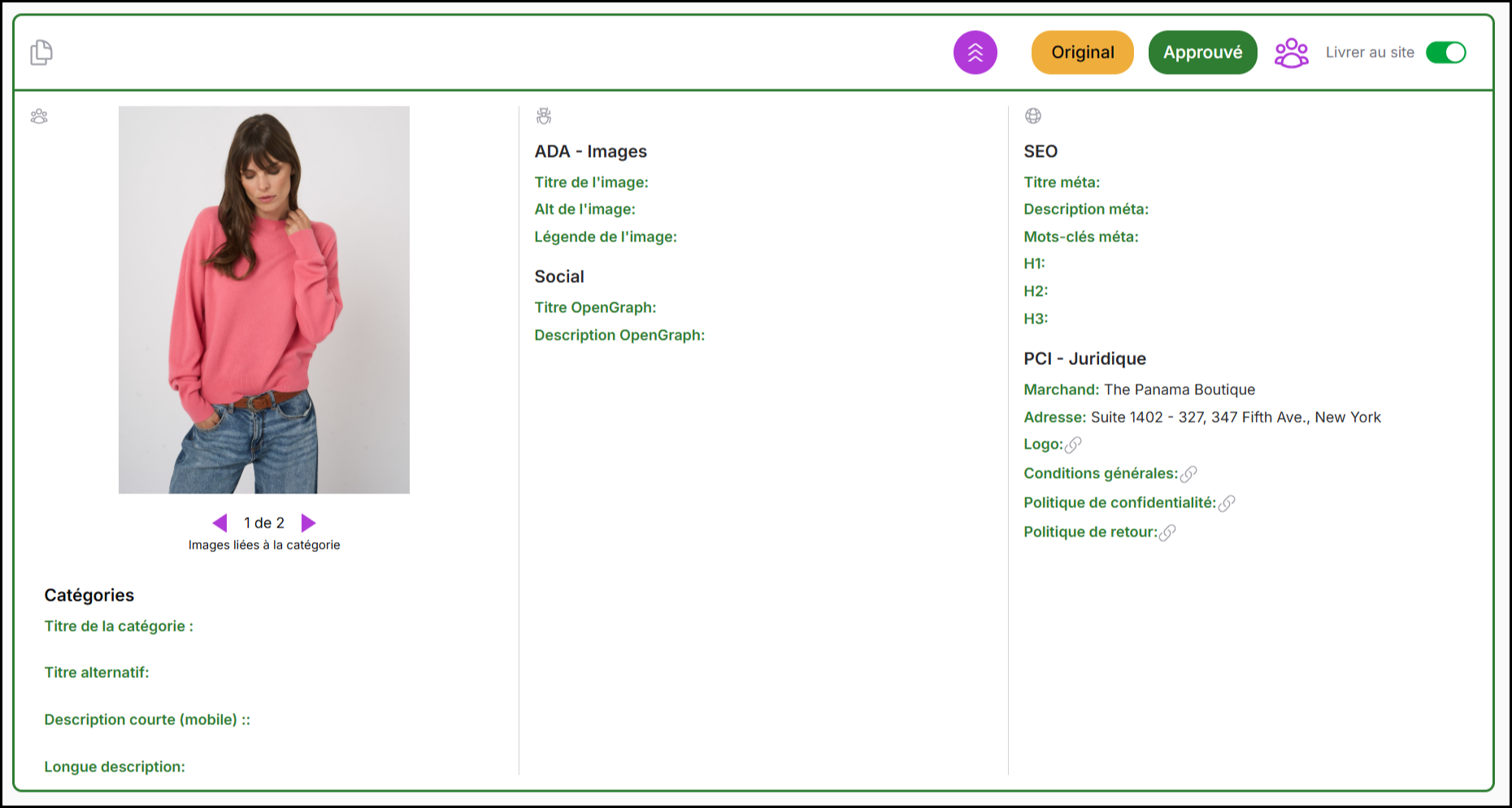 Les marchands ne sont pas tenus de modifier les champs de la galerie des catégories.