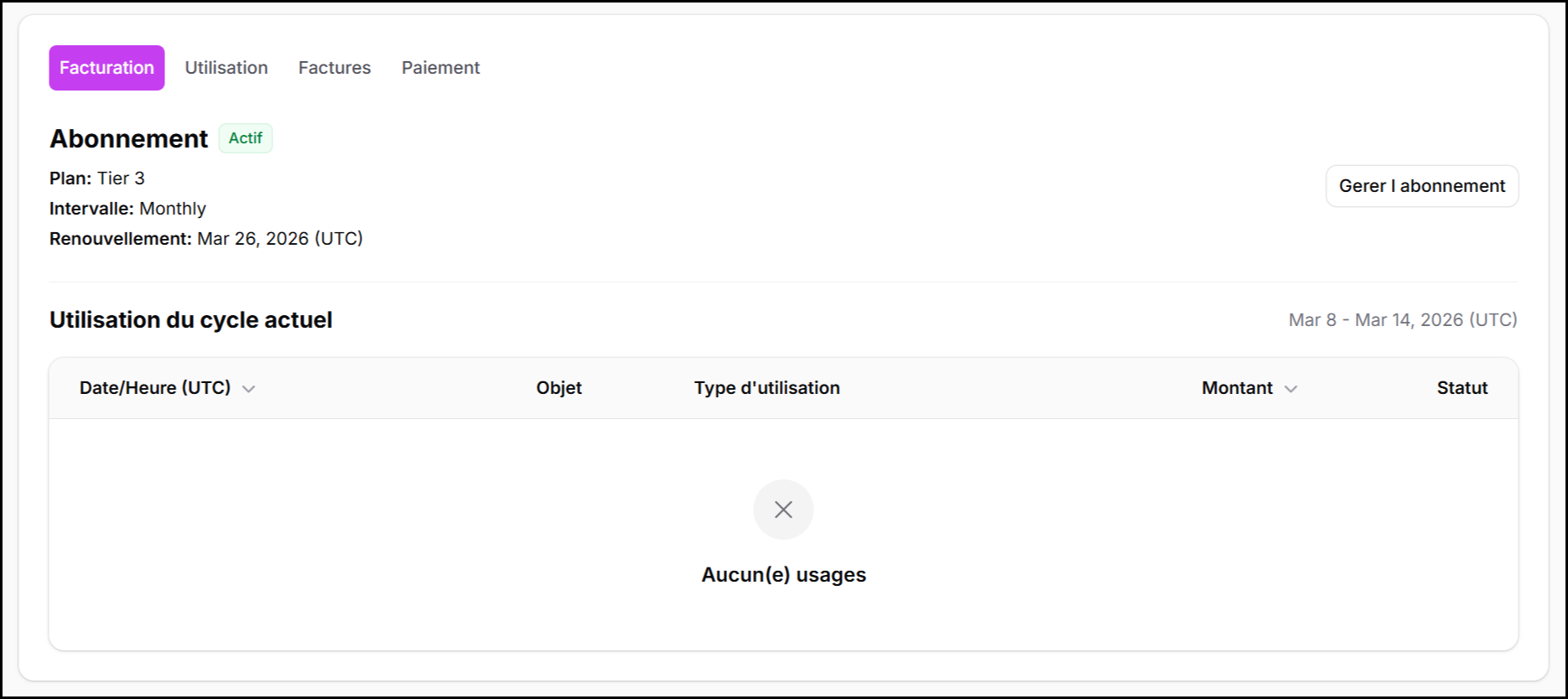 Comportement de tarification et de facturation