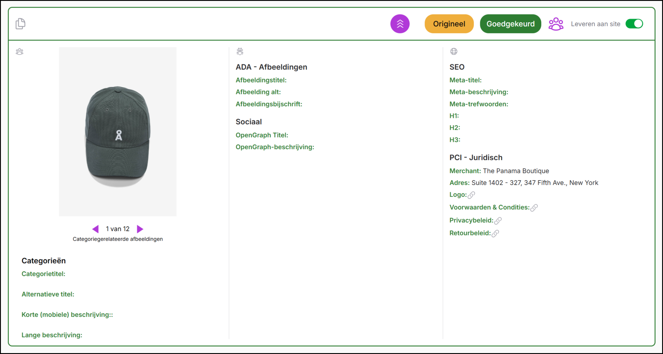 De meeste uitgebreide data (varianten, afbeeldingen, categorieën) erft veilig van goedgekeurde productlogica en vereist geen handmatige verificatie.