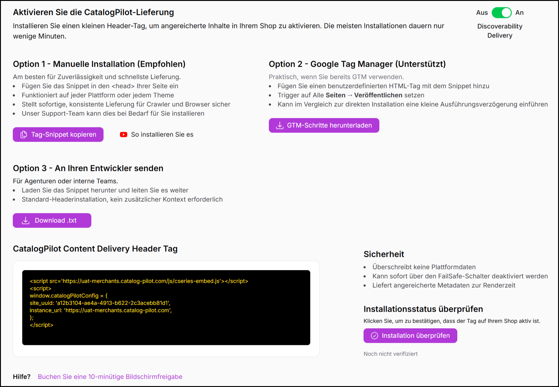 Das auf dieser Seite angezeigte Auslieferungsskript ist eindeutig für Ihr Konto und Ihre Umgebung.